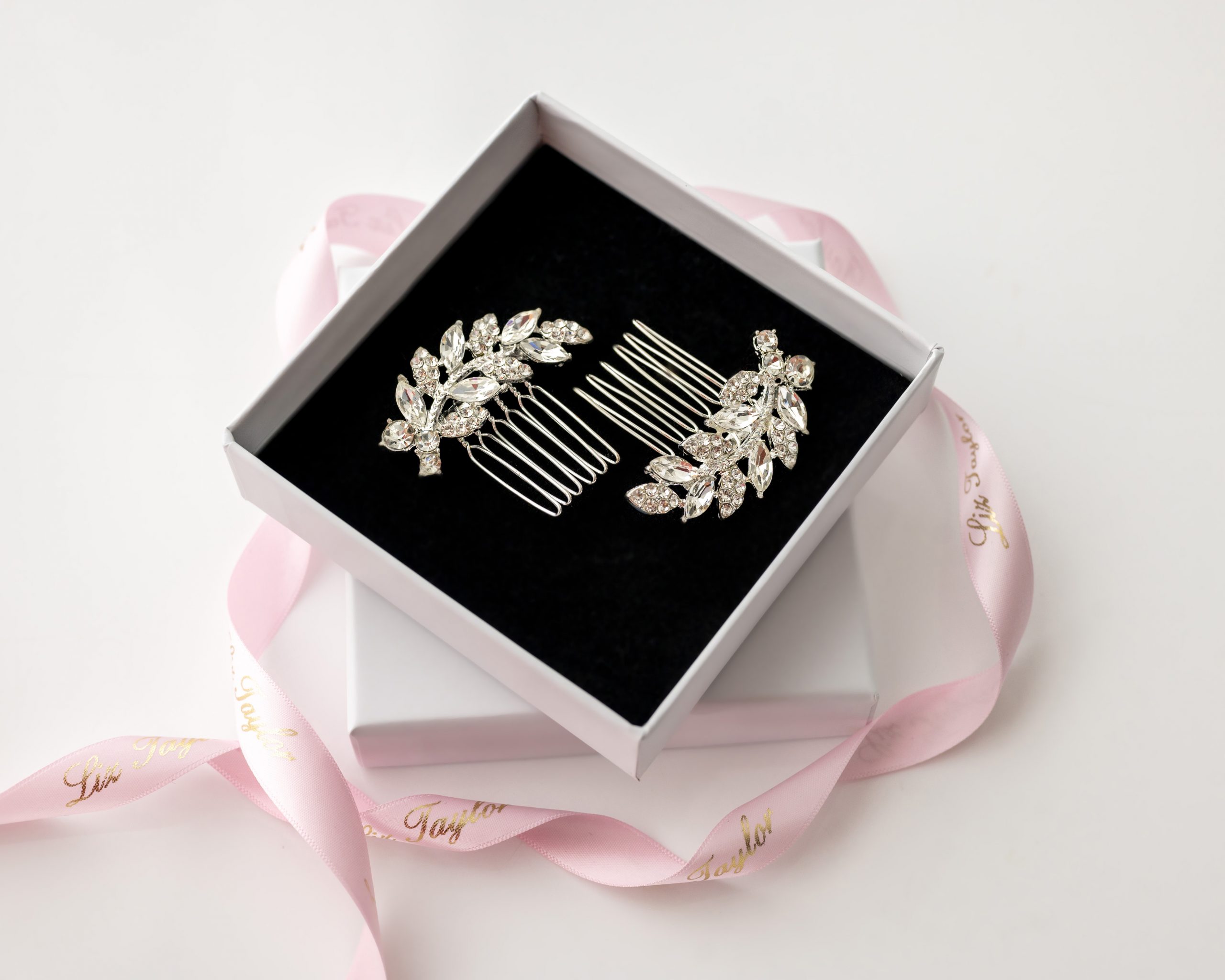 Glamorous crystal and rhinestone hair comb set in silver. Perfect for any Bride Bridesmaid or Flower Girl.